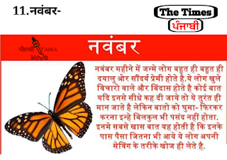 ये साल का दसवां महिना होता है और इस महीने में जन्मे लोग बहुत ही भावनात्मक होता है| इन्हें बातचीत करना बेहद पसंद होता है। ये बेहद इमानदार होते हैं। इनका मन बेहद खूबसूरत होता है, साथ ही साथ ये आकर्षक व्यक्तित्व के स्वामी होते हैं। इन्हें गुस्सा बहुत जल्दी आता है ये बहुत बहादुर होते है और दोस्त के रुप में बेजोड़ होते हैं। इनकी सोच बहुत ही व्यापक होती है। ये अपनी भावनाओं को छुपाने में यकीन नहीं रखते और जो सामने होते हैं वही अंदर भी होते हैं। ਤੁਸੀਂ ਪੜ੍ਹ ਰਹੇ ਹੋਂ ਪੰਜਾਬੀ ਤੜਕਾ ਨਿਊਜ਼ ਦਾ ਆਰਟੀਕਲ , ਜੇ ਤੁਹਾਨੂੰ ਇਹ ਆਰਟੀਕਲ ਚੰਗਾ ਲਗੇ ਤਾ ਇਸ ਨੂੰ share ਜਰੂਰ ਕਰੋ ਅਤੇ ਹੋਰ ਪੰਜਾਬੀ ਆਰਟੀਕਲ ਵੇਖਦੇ ਰਹਿਣ ਲਾਏ ਸਾਡਾ ਫੇਸਬੁੱਕ ਪੇਜ਼ ਜਰੂਰ ਲਾਇਕ ਕਰੋ , ਧੰਨਵਾਦ ।